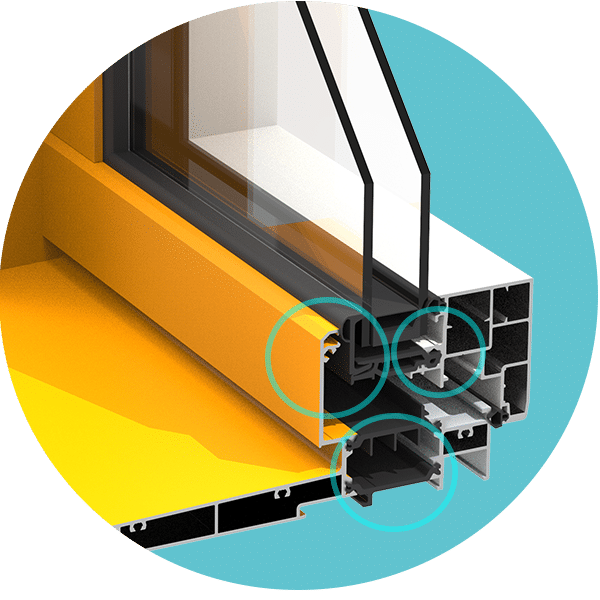 L’isolation est assurée sur l’ouvrant et dormant grâce à des profils techniques isolants formants les ruptures de ponts thermiques